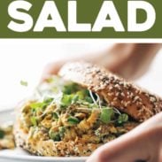 Oh man, this brings me back to college. Our favorite weekend brunch place (aka the hangover cure station) served up these AMAZING tarragon chicken salad bagel sandwiches. With sprouts. These look amazing as well, cannot wait to try them!