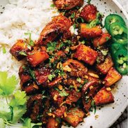Sticky-sweet pork, juicy pineapple, fresh herbs, jalapeño, and crispy onions all served over a bed of fluffy coconut rice. SO GOOD!